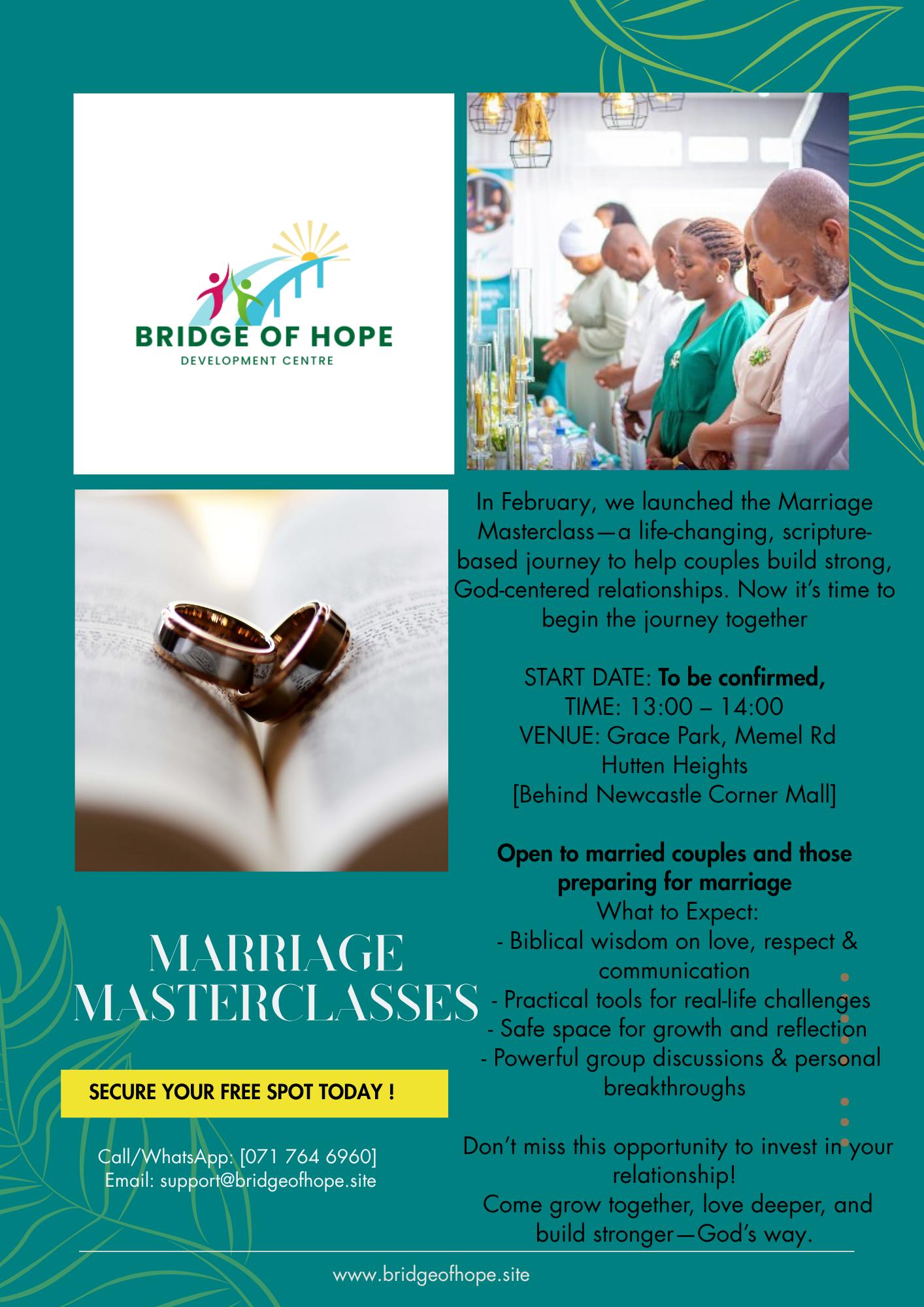 Armed with a Masters Degree in Social Science she has dedicated her life to unlocking doors for youth, women, and families in the Northern Natal Region—helping them rise above limitations and embrace their full potential. Under her guidance, Bridge of Hope has launched life-changing initiatives in education, entrepreneurship, global job access, and relationship development.